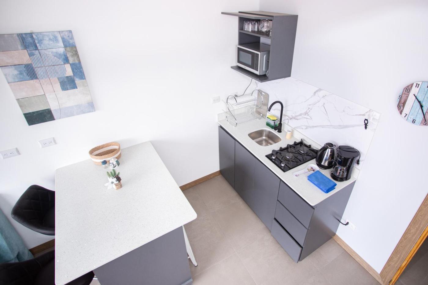 Apartment with Mountain View. This apartment consists of 1 living room, 1 separate bedroom and 1 bathroom with a shower and free toiletries. Guests can make meals in the kitchen that is equipped with a refrigerator, kitchenware, a microwave and a toaster. Featuring a patio, this apartment also provides a washing machine, a dining area and a TV. The unit offers 2 beds. ;