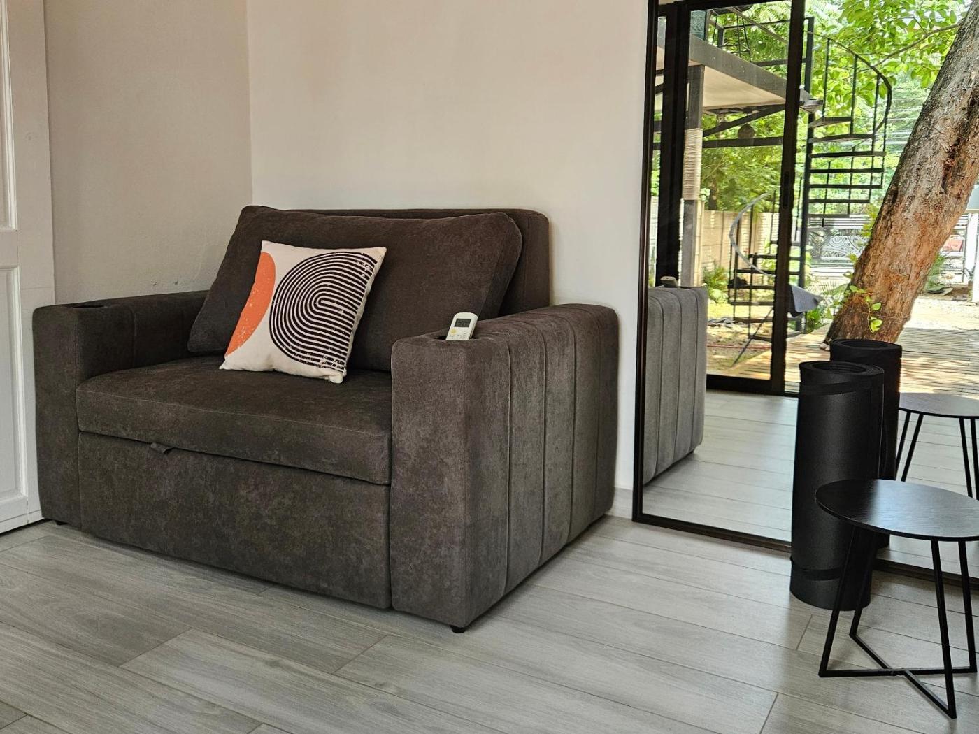 Two-Bedroom House. Featuring a private entrance, this air-conditioned holiday home is comprised of 1 living room, 2 separate bedrooms and 2 bathrooms with a shower. Guests will find a stovetop, a refrigerator, kitchenware and an oven in the well-fitted kitchen. The holiday home also has a barbecue. The holiday home features a tea and coffee maker, a dining area, a wardrobe as well as a terrace with garden views. The unit offers 2 beds.