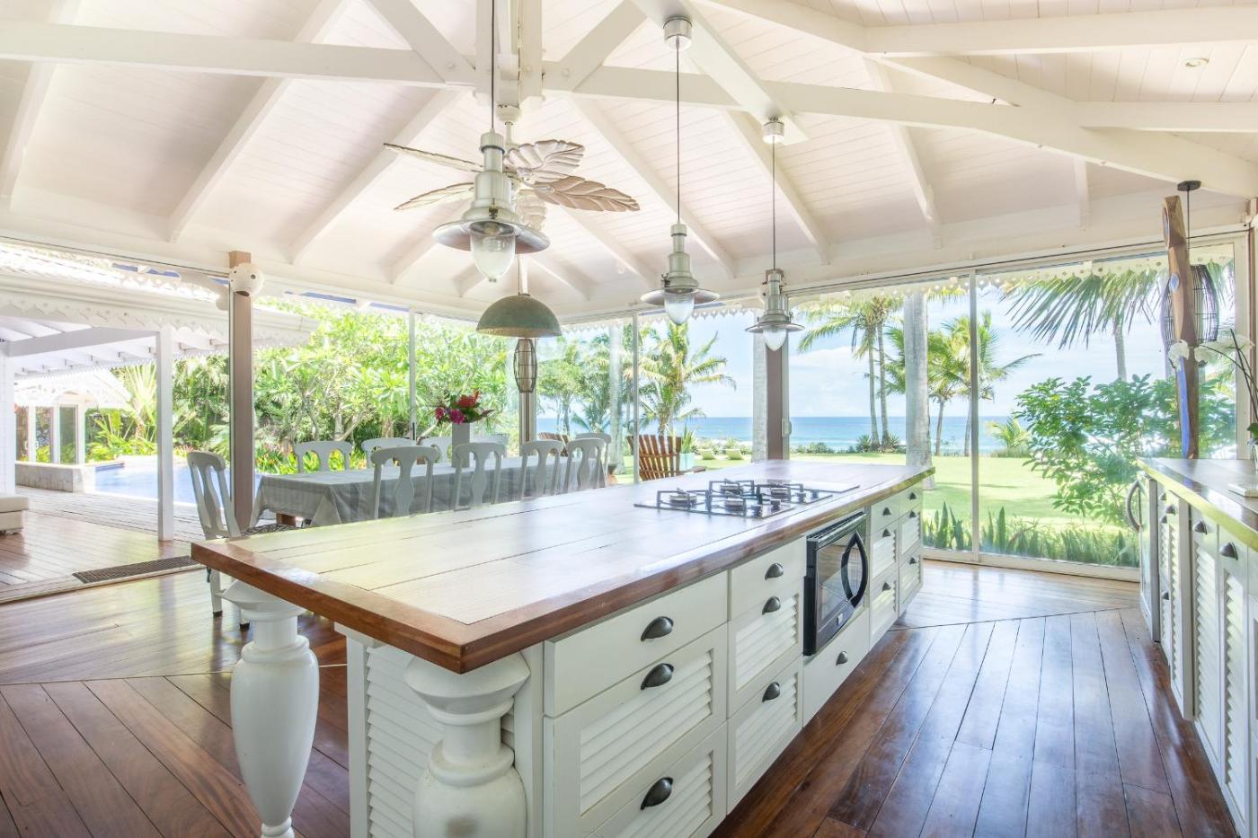 Villa - Beach Front. This villas standout feature is the infinity pool. This spacious villa includes 1 living room, 5 separate bedrooms and 5 bathrooms with a shower and free toiletries. In the well-equipped kitchen, guests will find a refrigerator, a dishwasher, kitchenware and an oven. The air-conditioned villa offers a flat-screen TV, a washing machine, a private entrance, a coffee machine as well as sea views. The unit has 7 beds. ;